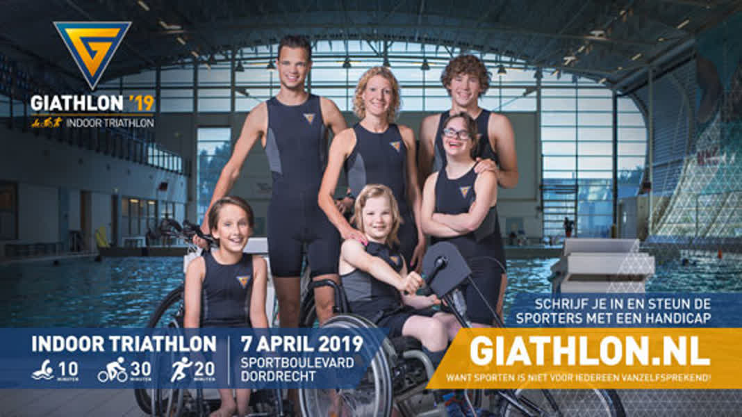 De derde editie van de Giathlon (indoor triathlon) zal op zondag 7 april in de Sportboulevard Dordrecht plaatsvinden. De sportvrouwen Bibian Mentel en Yvonne van Gennip zoeken hulp van sporters die zich één uur willen inzetten voor sporters met een handicap.