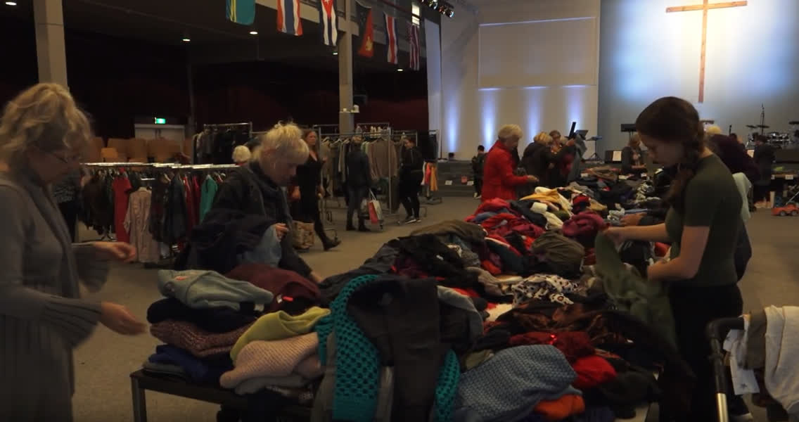 De Dubbeldamse Jozuakerk lag dinsdag alweer voor de achttiende keer vol met kleding voor de 1-2-3 euro kledingbeurs. De opbrengst van deze kledingverkoop gaat volledig naar de zendelingen die namens de Evangelische gemeente over de hele wereld werken.