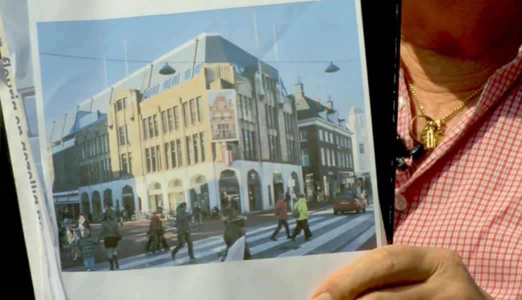 Levensgrote billboards in de stad om de monumentale gebouwen van Dordrecht tentoon te stellen.