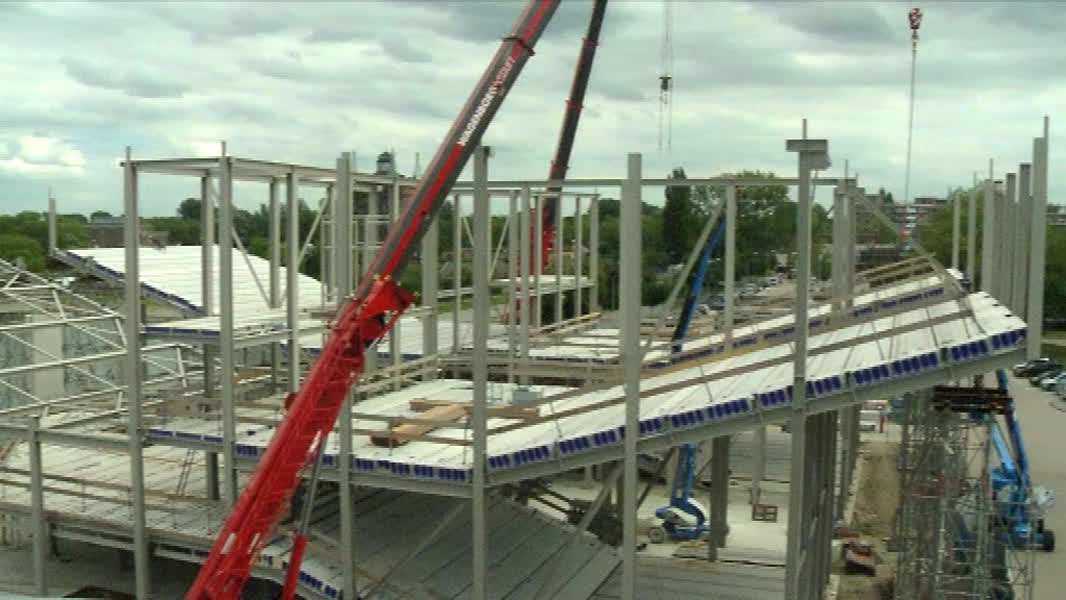 De vorm van de nieuwe bioscoop bij het Energiehuis is steeds beter te zien.