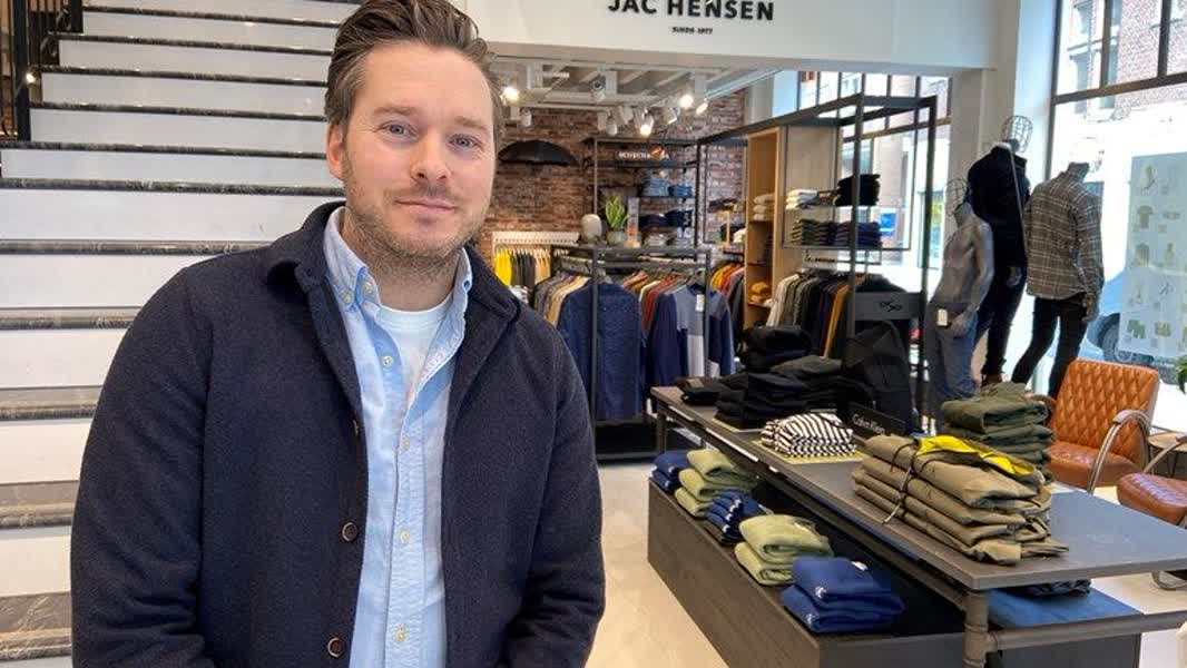"Het is een heel bescheiden perspectief op de service die we graag weer willen bieden en het contact met de klant dat wel willen hebben. Het is een heel klein kiertje. Met de drie verdiepingen die ik hier heb zou ik veel beter en veiliger kunnen werken met tijdsloten. We hebben alle ruimte. Eén klant per verdieping! We zijn een winkel met betaalbare mannenkleding. Die gaan toch niet zo snel de stad in, speciaal voor een nieuwe trui. Nee, zeker geen vlag uit, maar er is toch een beetje perspectief."