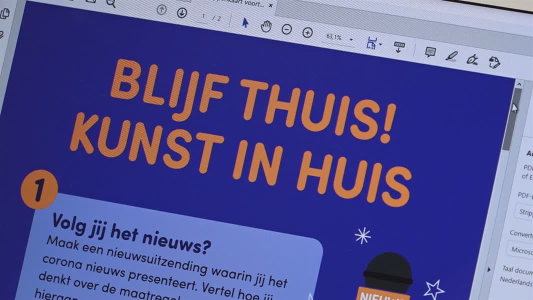 Verschillende opdrachten op het gebied van cultuur en educatie op een speciale ‘Blijf thuis, kunst in huis-kaart’. Themba Schmitz heeft deze opdrachtkaarten bedacht voor kinderen op het basisonderwijs en voortgezet onderwijs, om te verwerken wat in deze tijd allemaal op hen afkomt.
