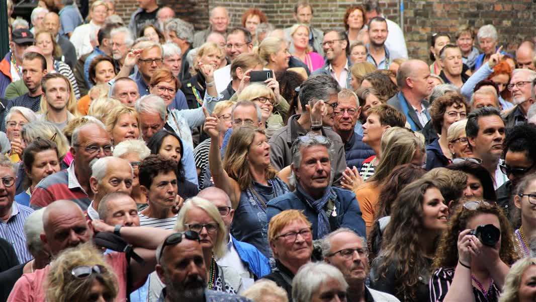 Om half zeven trad Noble the Band op op het podium bij de Grote Kerk. Zowel Marianne Noble, bekend van onder andere The Voice of Senior, als dochter Menke Meijer moesten er heel even inkomen. Maar dan heb je ook wat. De 71-jarige zangeres straalt van geluk en zingt de longen uit haar lijf. Dat zelfde geldt voor de bijna 50-jarige Meijer. Het publiek gaat los als Noble haar cover van Amy Winehouse, ‘Back to Black’ inzet.