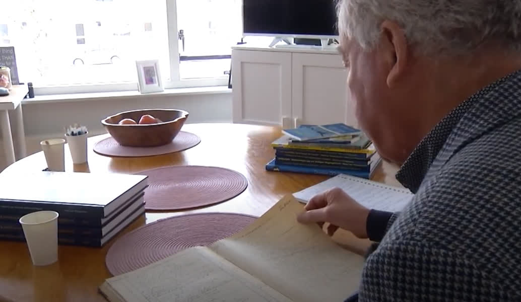 Van Wijngaarden vertelt dat hij dit handgeschreven boek heeft gevonden. “Het lag in een kelder van een vliegtuigfabriek in Papendrecht. De fabriek werd gesloopt en daarvoor heb ik er even rondgekeken, zo nieuwsgierig als ik ben.”