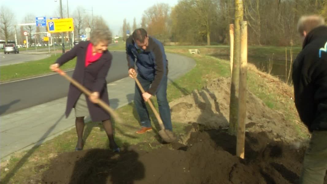 In het Overkamppark in de buurt van het politiebureau heeft Wethouder Reynvaan vanochtend een boom geplant. De boom symboliseert de samenwerking tussen de gemeente en diverse organisaties die onderzoek doen naar ziektes bij bomen.