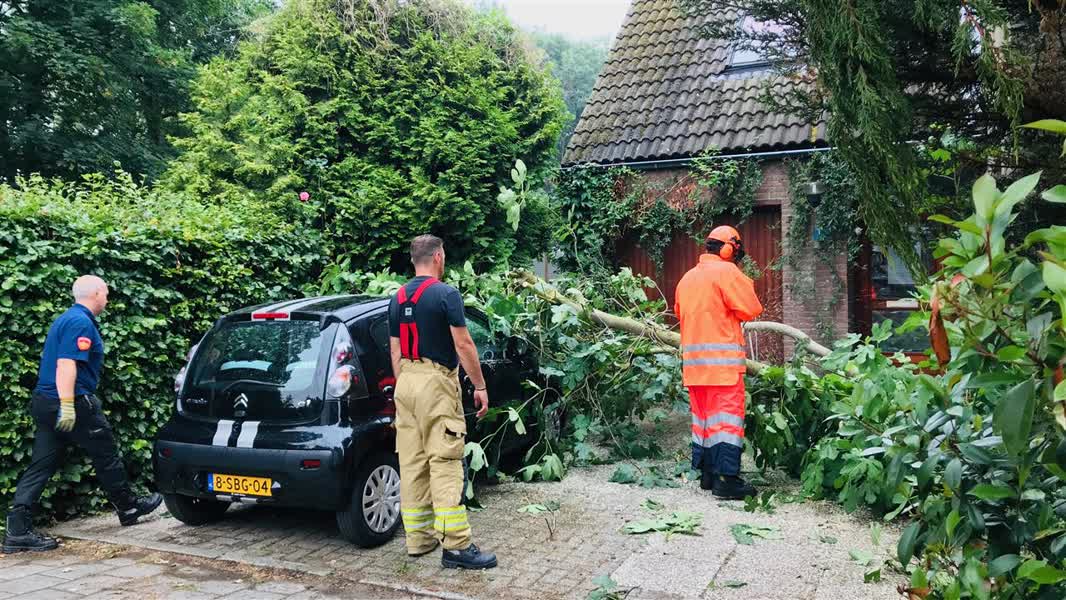 Het was flink schrikken voor de bewoners aan de Arkelstein in Sterrenburg. Vrijdagavond sloeg daar de bliksem in. Daarbij viel een boom om bovenop een auto.