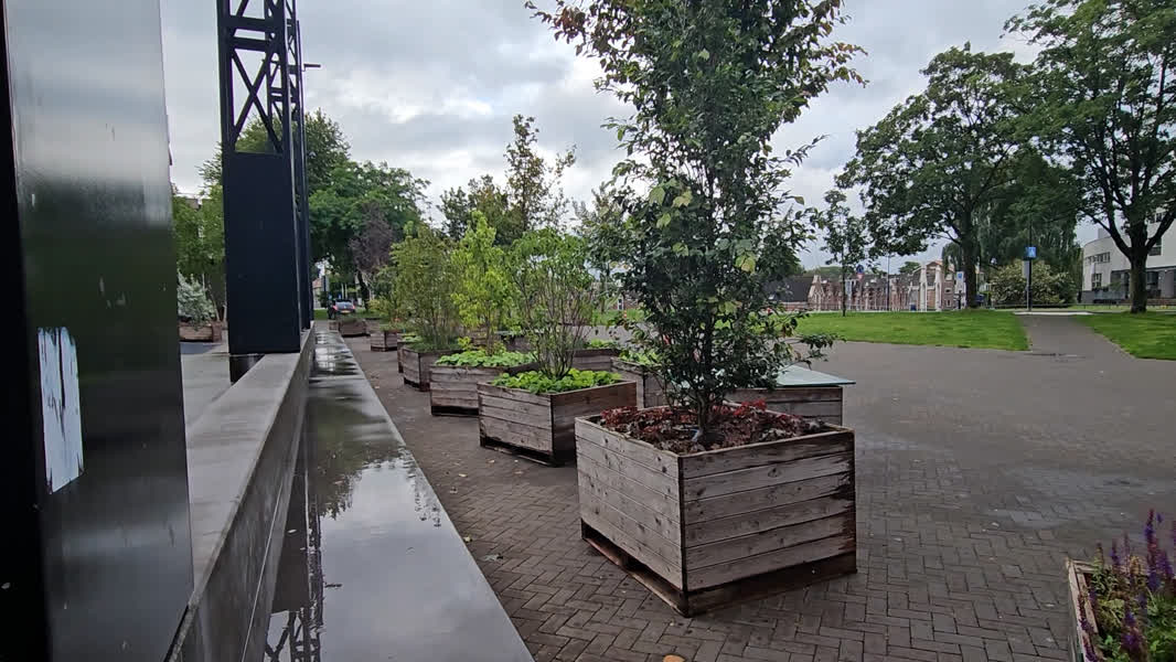 Op het Bagijnhof waren ze er blij mee. Daar zijn een aantal bakken achtergebleven op verzoek van bewoners.