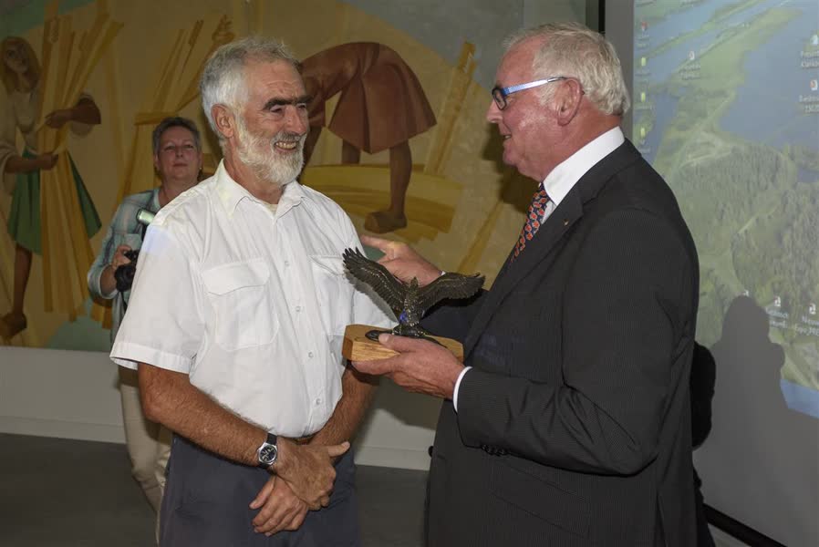 Feij nam een bronzen sculptuur van een zee-arend gisteren in ontvangst in het Biesboschmuseum in Werkendam. Hij werkte en woonde sinds 1965 in de Biesbosch. Hij begon zijn loopbaan in de boswachterij van Austerlitz, waarna hij vogelwachter werd op Texel. Feij ging in 2008 met pensioen.
