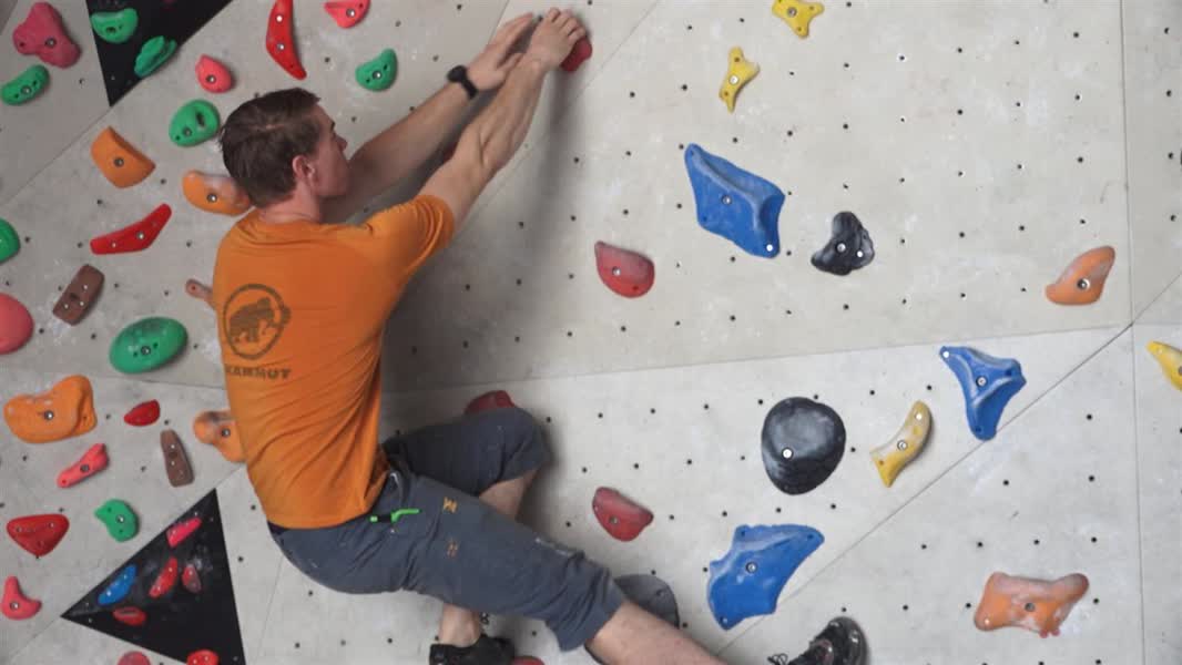 Bij boulderen wordt een wand van 4,5 meter hoog beklommen. “Je hebt maar een aantal grepen op de muur”, legt coördinator Jasper Rijken uit. “Je moet met die grepen boven zien te komen.” Dat maakt de sport volgens Jasper heel dynamisch. Er moet veel worden gesprongen.