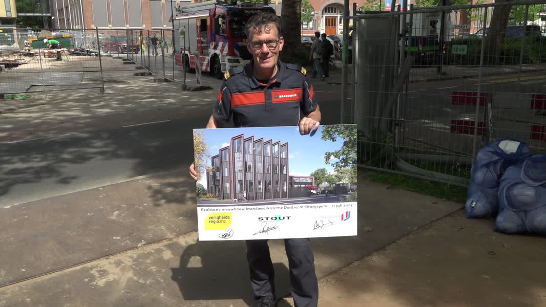 De bouw van een nieuwe brandweerkazerne bij het Oranjepark in Dordrecht is van start gegaan. De kazerne komt hemelsbreed iets meer dan een kilometer van de kazerne aan het Leerpark, maar is volgens veiligheidsdirecteur Carin Frentz hard nodig. "Zeker in een stad zo oud als Dordrecht is het belangrijk dat we er snel bij kunnen zijn."
