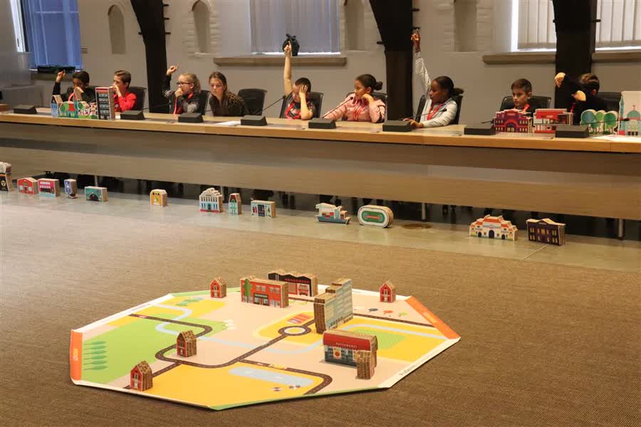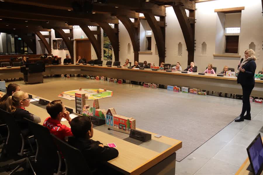 Een korte kennismaking met de gemeenteraad voor leerlingen uit groep 7 en 8 van OBS De Griffioen donderdagochtend. Zij gingen in de Raadszaal van het Stadhuis met elkaar in debat over wat zij belangrijk vinden in een stad, als onderdeel van het Democracity-spel.