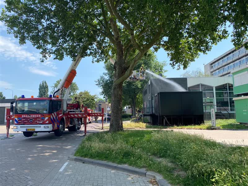 In een bijgebouw aan het Energieplein werd vrijdagmiddag om 13:30 een brand gemeld. De politie te water merkte de brand op toen ze langsvaarden. Zij hebben de brandweer gebeld. Al snel werd opgeschaald naar een middenbrand.