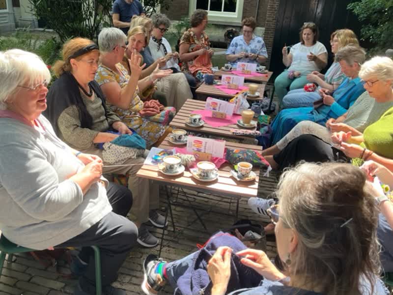Breien in de tuin van het Huis van Gijn: ´Het is heel ontspannend´
