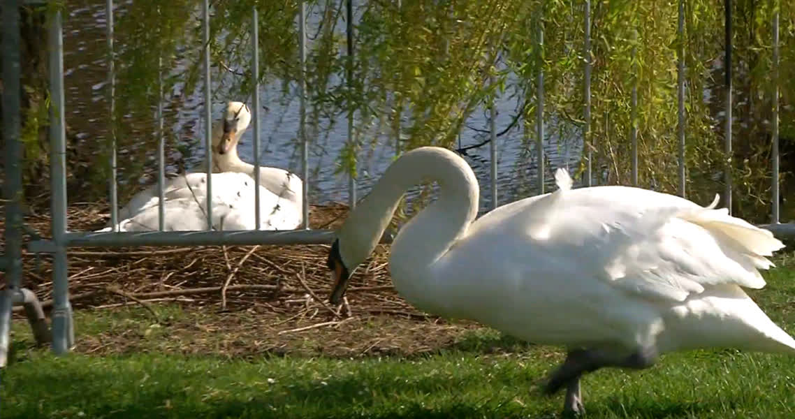 De zwanen op de Nassauweg zitten er weer beschermd bij. Hekken en bordjes moeten hen beschermen tegen het stelen van eieren en overmatig voeren.