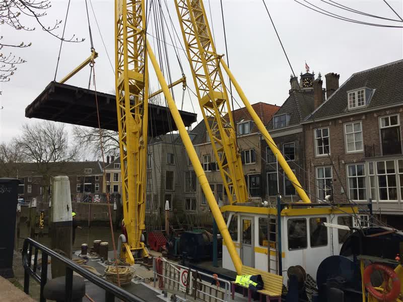 De brug is al vanaf januari dicht voor groot onderhoud. Zo wordt niet alleen het mechanisme waarmee de brug open en dicht kan aangepakt, ook de palen waar de brug op rust moeten er uit en de kademuren worden hersteld.