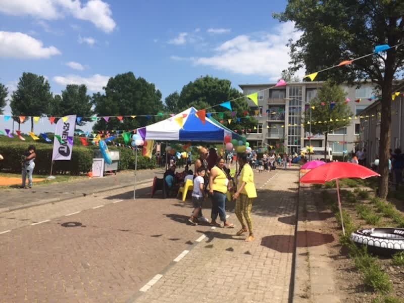 Samen met het jongerennetwerk R-Newt heeft een van de jongste bewoners van de Fuutstraat, Ronaiska Felicia, de activiteiten in de Vogelbuurt geregeld. Zaklopen, springen op het springkussen, een watergevecht, een voetbaltoernooi en diverse workshops voor jong en oud werden hier vandaag georganiseerd.
