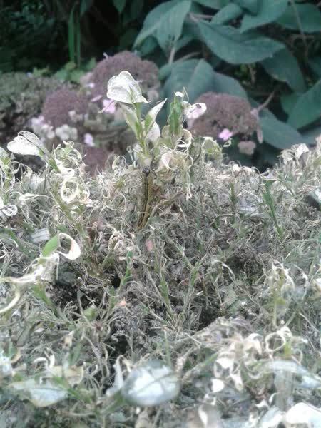 De buxusmot is een beestje dat eruit ziet als een rups van zo'n vier centimeter en die, heel verrassend, in buxussen leeft. Hij nestelt zich zo rond mei in een mooie groene buxus, die er dan in augustus compleet verdord uitziet. Met dank aan de buxusmot.