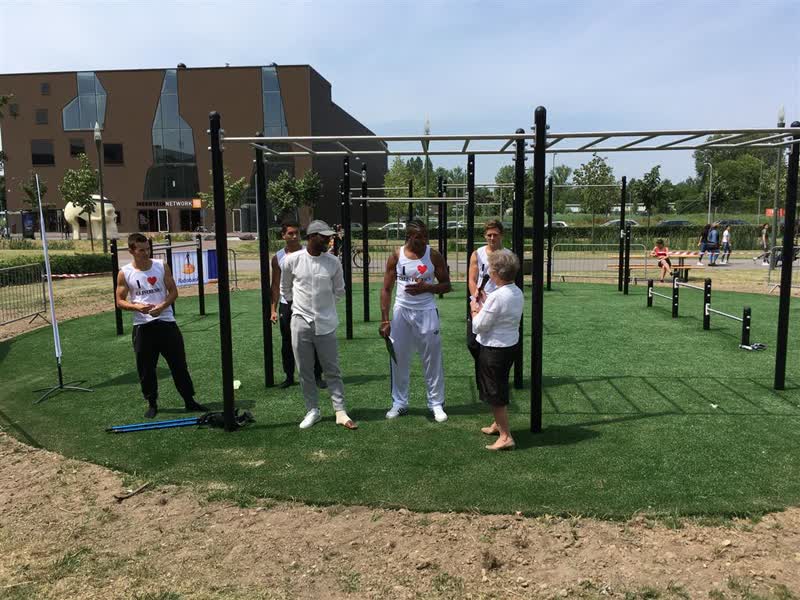 Sportwethouder Rinette Reynvaan heeft zojuist het Calisthenicspark op het Leerpark officieel geopend.