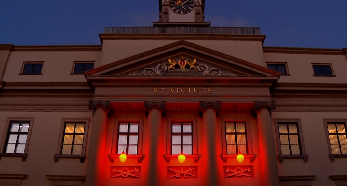 Campagne Orange the World start met oranje kleuren van Stadhuis
