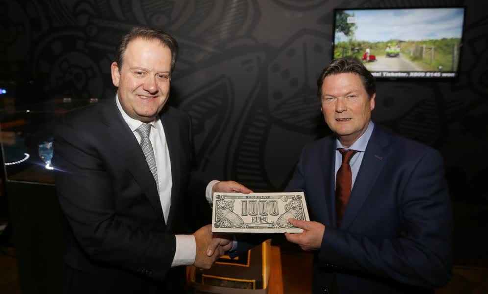 Wethouder Sleeking kreeg de cheque woensdagavond tijdens het openingsfeest voor genodigden. Vanmiddag gaat Fair Play Casino Dordrecht voor het eerst open voor publiek. Jongeren onder de 21 mogen niet naar binnen.