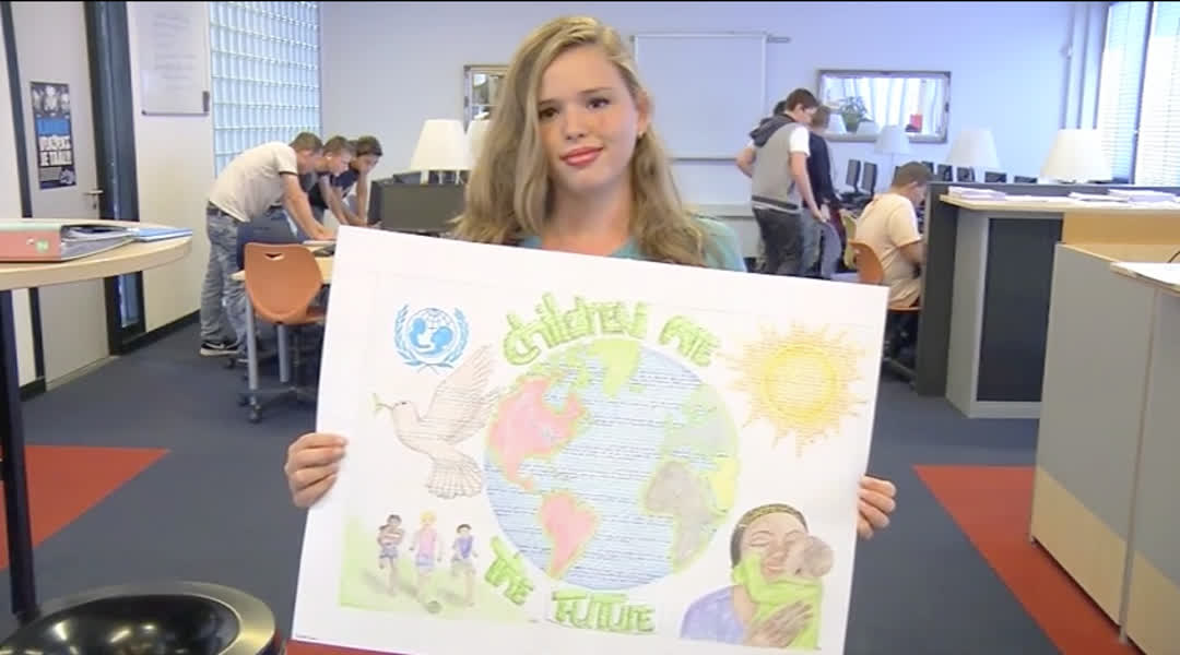 Zij is leerlinge van het Wellantcollege Mavo Stek en heeft voor UNICEF een poster ontworpen, die zij a.s. woensdag in Voorburg bij het kantoor gaat afleveren.