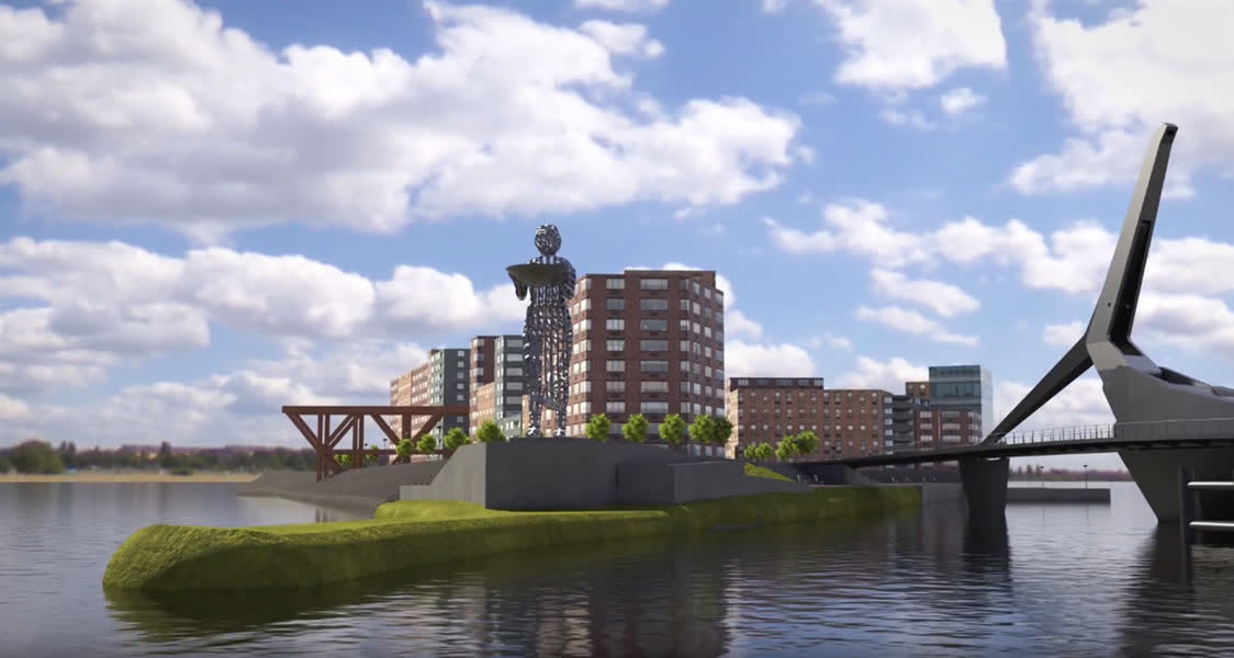 De droom van kunstenaar Gerhard Lentink is weer een stapje dichterbij. Hij ziet graag een achttien meter hoog beeld op de kop van de Stadswerven verrijzen. Dinsdagavond presenteerde hij zijn plannen in een commissievergadering, de gemeenteraadsleden reageerden daar volgens hem vrij postief op.