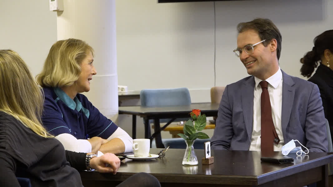 "Tijdens zo'n gesprek praten we vooral over ons werk; hoe gaat het? Lopen we tegen dingen aan? Maar ook over de samenwerking met de gemeente. Hij had gewoon interesse in de thuiszorg", zegt Liesbet Horst, zorgmedewerker bij Stadswiel.