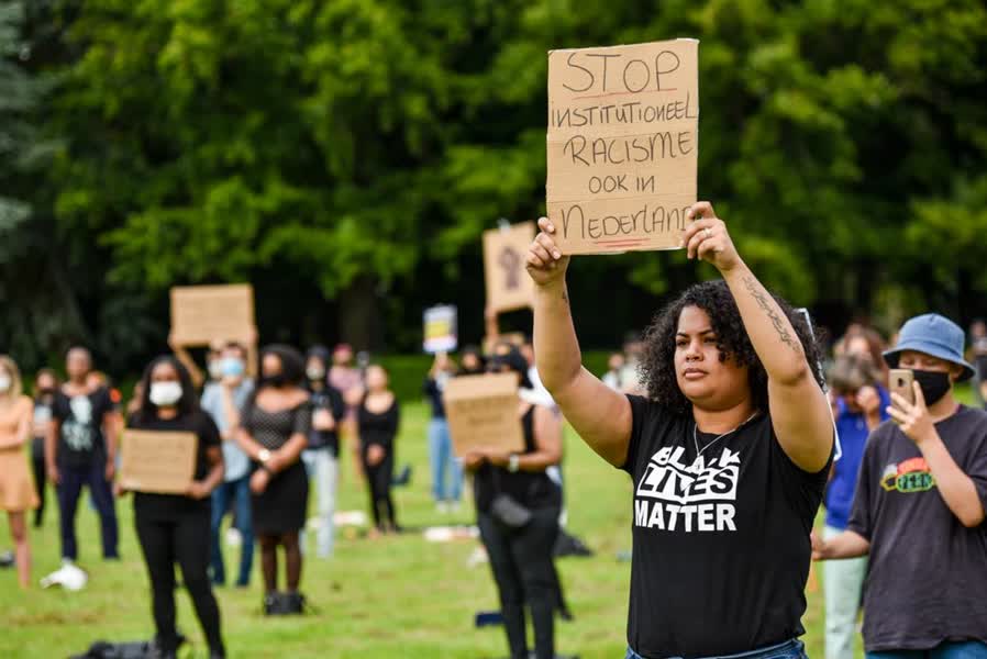 Het is inmiddels zes weken geleden dat in Amerika de donkergetinte George Floyd om het leven kwam door politiegeweld maar demonstreren tegen discriminatie blijft volgens de demonstranten in het Weizigtpark nog altijd nodig.
