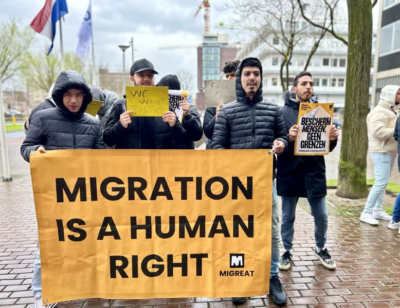 Het ‘tentprotest’ werd georganiseerd door MiGreat, dat in actie komt tegen het volgens de organisatie ‘gewelddadige en dodelijke grensbeleid van Europa’.