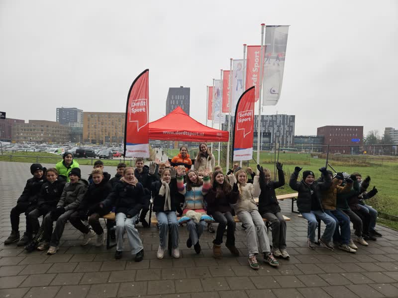 Deze groep acht won de hoofdprijs met een ingestuurde video, waarin de klas een ski-slalom wedstrijd uitbeeldde. Dordt Sport organiseert dit soort wedstrijden om kinderen in aanraking te laten komen met verschillende sporten. “Ik vind het belangrijk dat de jeugd van dichtbij ziet hoe leuk het is om te sporten”, vertelt Patricia van der Vliet, coördinator en sportcoach bij Dordt Sport. “De kinderen stellen hele goede vragen en ik vind het leuk om te zien hoe de schaatsers hierop antwoorden.”