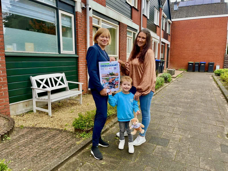 Wethouder en portefeuillehouder energietransitie Jacqueline van Dongen overhandigde het eerste exemplaar aan de Dordtse Sylvia en haar zoontje. De krant is een initiatief van Smart Delta Drechtsteden in samenwerking met organisaties die samen werken aan de energietransitie in de regio Drechtsteden.