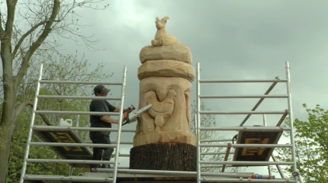 Van de vier meter hoge eik die er nu staat, maakt hij een zogenoemde dierenboom. De dieren van de stadsboerderij staan hierin centraal. De kunstenaar zaagt de dieren in de boom aan de hand van recente foto's. Over een paar dagen is de dierenboom af.