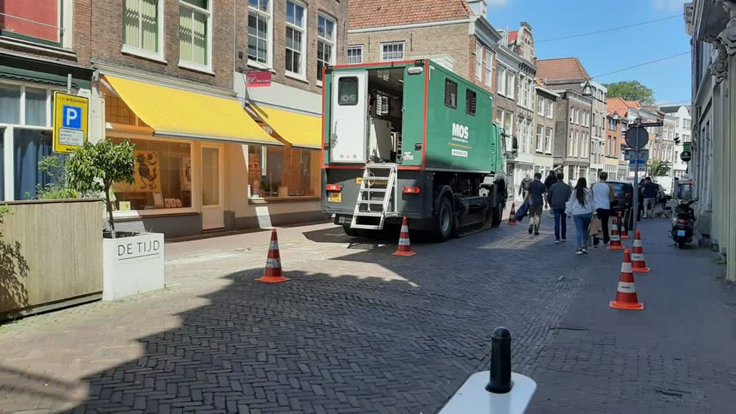 Een enorme vrachtwagen doet deze week onderzoek in de binnenstad. Er wordt gecontroleerd of de dijken nog stevig genoeg zijn.