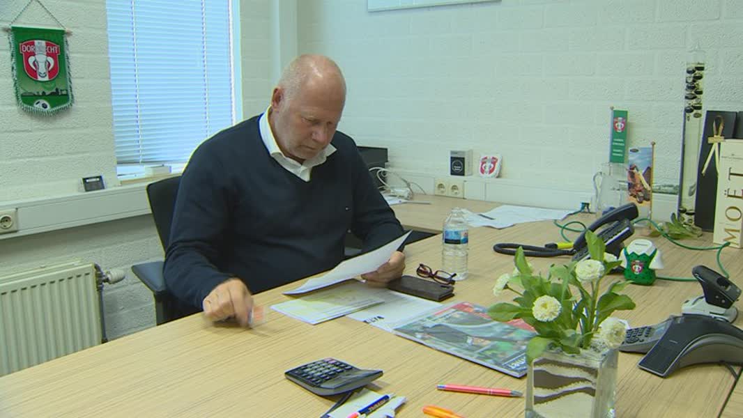 Hans de Zeeuw is niet vaak op kantoor, maar op woensdag scant hij de binnengekomen post aan de Krommedijk. Alles wordt doorgezet aan de medewerkers, die noodgedwongen thuis werken. Ook de spelers van FC Dordrecht zijn vanwege het coronavirus niet op de club. Zij hebben van technisch manager en trainer Harry van den Ham een programma meegekregen om zichzelf fit te houden.