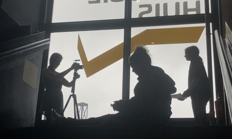 Een tentoonstelling in opbouw in het voormalig leegstaande stationsgebouw in Dordrecht. Het is een ...