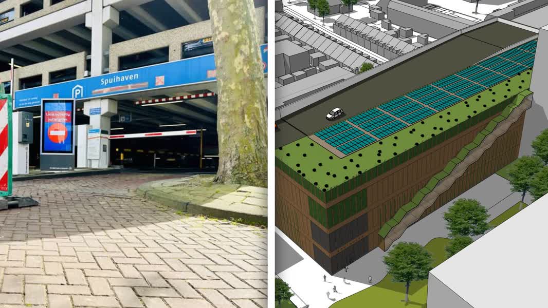 De huidige Spuihavengarage moet plaats maken voor een nieuwe garage met groene uitstraling Streekomroep 56/Gemeente Dordrecht