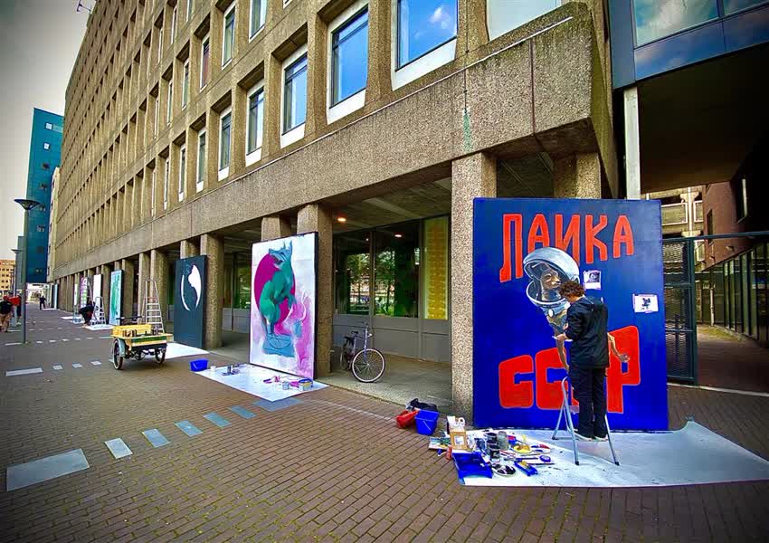 Zestien kunstenaars zullen de komende maanden de panelen beschilderen waarbij iedere twee maanden een nieuw thema gehanteerd wordt. Coördinator en tevens graffitikunstenaar Sammy Schakel: 'Iedere editie laten we telkens vier kunstenaar aan het werk gaan waarbij ze twee panelen voor hun rekening nemen. Het thema van deze eerste keer is door DOOR bepaald en is het thema Hond. De volgende ronde hopen we alleen vrouwlijke kunstnaars aan het werk te hebben en zij kunnen dan ook zelf het thema beslissen'.