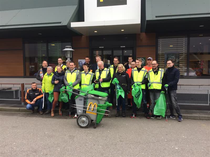 Medewerkers van McDonalds, Dordtse Doorpakkers en wethouder Marco Stam namen de afvalgrijper en vuilniszak ter hand en trokken de wijk in ten strijde tegen het zwerfafval.