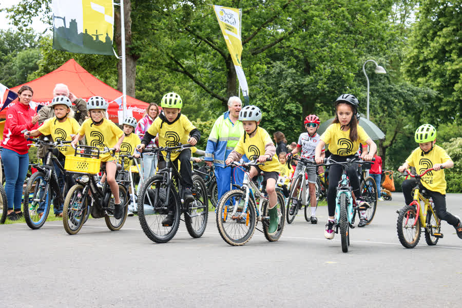 Jonge bewoners op de fiets tijdens een Dikke Banden Race Corrado Francke