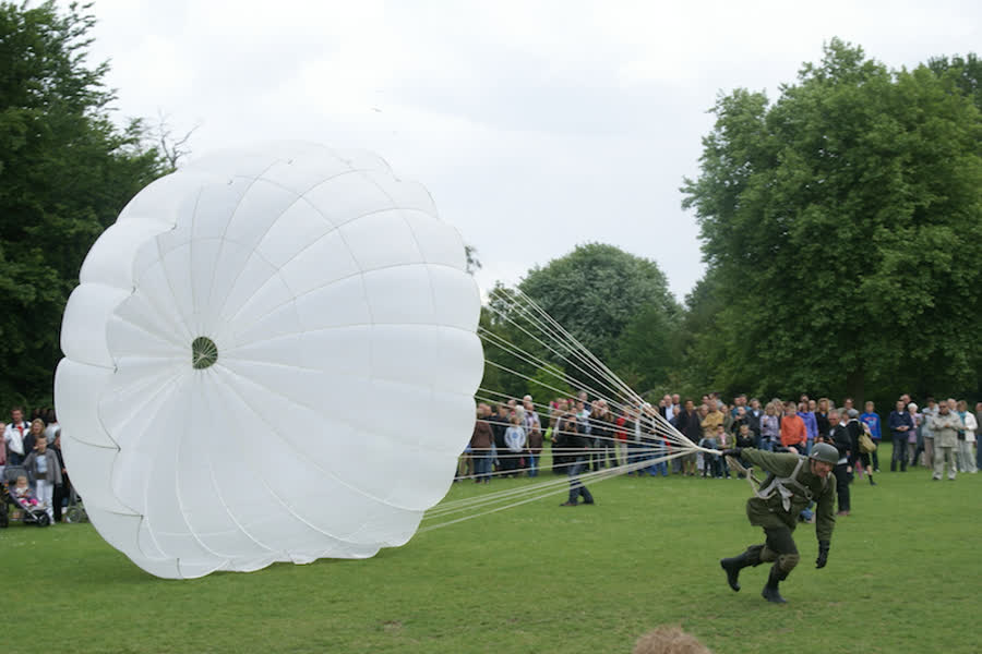 In het Weizigtpark landen op 10 mei Duitse parachutisten.