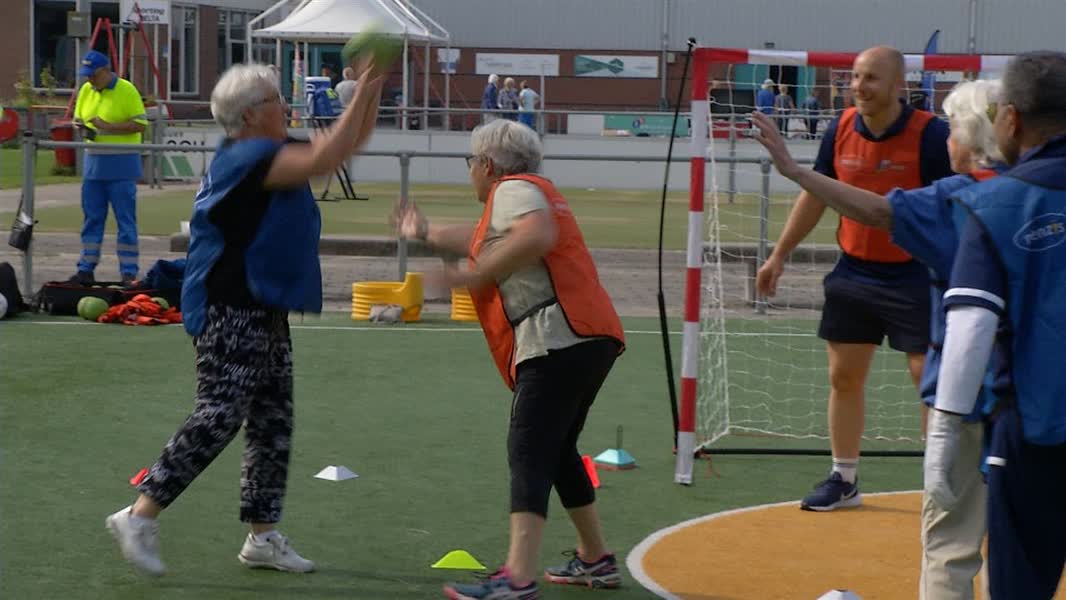 Ook was er een speciale ouderenversie van handbal; walking handbal. In deze aangepaste versie van de originele sport wordt er in kleinere teams gespeeld en is het veld een stuk korter. Een uitkomst voor één van de fanatieke dames in het blauw: "Ik vind het heel leuk. Ik heb altijd op de sportschool gezeten, maar op een gegeven werden anderen te fanatiek." Deze mevrouw doet ook nog aan yoga, nordic walking en fietsen. "Ik hoop het nog lang te blijven doen."