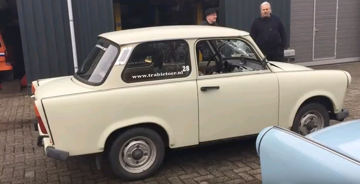 Hij had 'm zaterdagavond even op de parkeerplaats van sportpark Amstelwijck in Dordrecht gezet, maar de volgende dag bleken vandalen zijn Trabantje flink te hebben vernield. Dordtenaar Etienne Busink vertelt aan RTV Rijnmond-verslaggever Thijs Bom dat hij daar enorm van baalt.