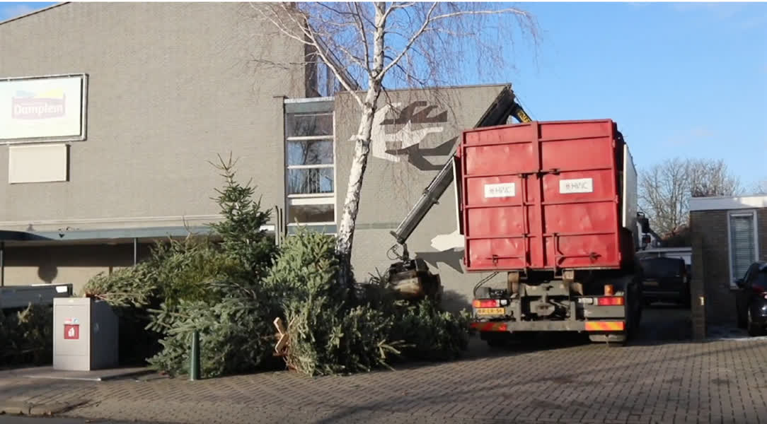 Een groep kinderen heeft 160 bomen ingeleverd. Daarvoor hebben ze de hele dag bomen opgehaald met een bestelbus. De kerstbomen werden opgehaald en vervoerd in twee HVC-containers naar het kerstbomenkerkhof.