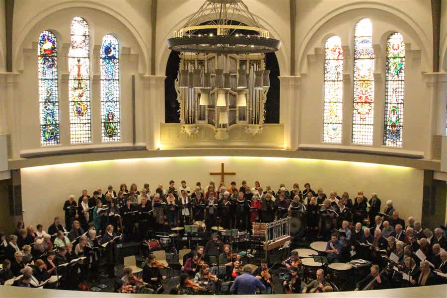 Het Dordts Kamer Orkest met solisten staat onder leiding van dirigent Ries van der Zouwen. Het scratch-koor waarvoor mensen zich uit heel Nederland konden opgeven om mee te doen, bestaat uit meer dan 240 leden.