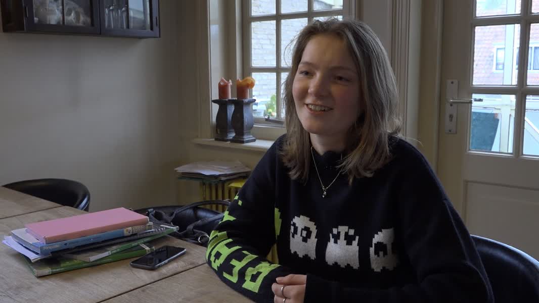 De 16-jarige Perrl doet dit jaar MAVO examen en zij kijkt wellicht iets te ontspannen naar het examen, aldus haarzelf. "Ik sta er momenteel hartstikke goed voor met vooral zevens, maar ook twee zessen", zegt ze aan de keukentafel in haar huis. Op deze plek bereidt ze zich ook het meest voor en die leersessies zijn vaak van "heel korte" duur. Perrl: "Door middel van oude examens maken en samenvatting te schrijven leer ik het beste voor de eindexamens."