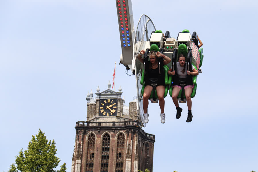 De Zomerkermis in Dordrecht is zaterdagmiddag warm en daardoor vrij rustig begonnen. De kermis besta...