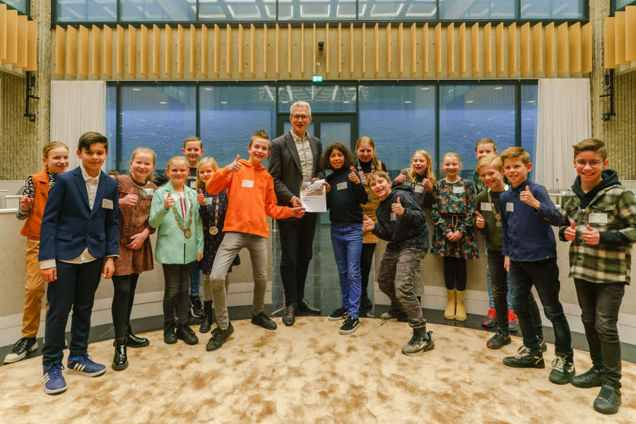Donderdag is Mees van Veen als eerste kinderburgemeester van Papendrecht geïnstalleerd door burgemee...