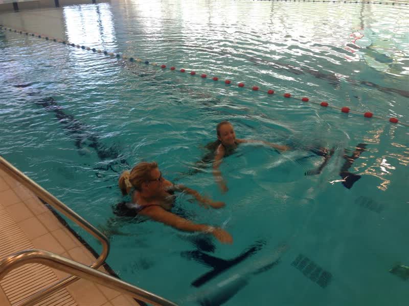 Tijdens haar zwemchallenge zwom Patricia zestig baantjes waarmee ze meer dan vierhonderd euro ophaalde.