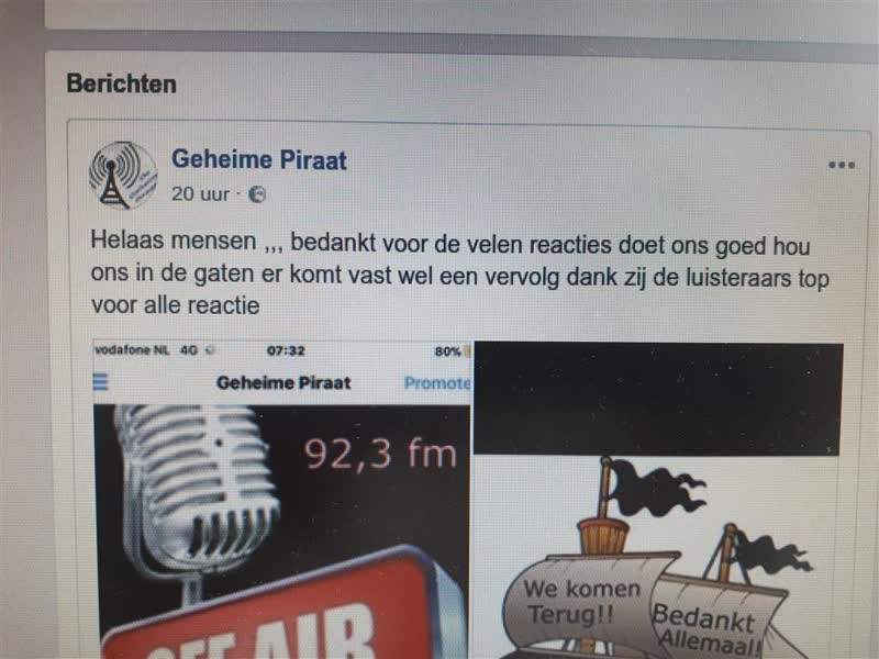 Op een Facebookpagina bedankt deze illegale radiomaker de luisteraars en meldt dat er een vervolg zal komen op de uitzendingen.