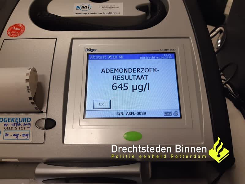 De man werd door de politie gecontroleerd toen hij zonder verlichting over de Smitsweg reed. Omdat de man naar alcohol rook moest hij mee naar het bureau en meedoen aan een ademonderzoek. De man bleek 645 ugl te blazen. Dat is ongeveer rond de acht glazen.